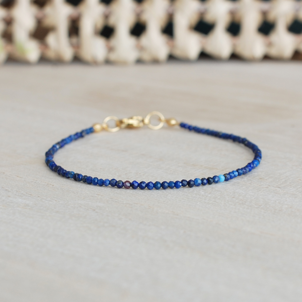 Dainty Lapis Lazuli gemstone bead bracelet.