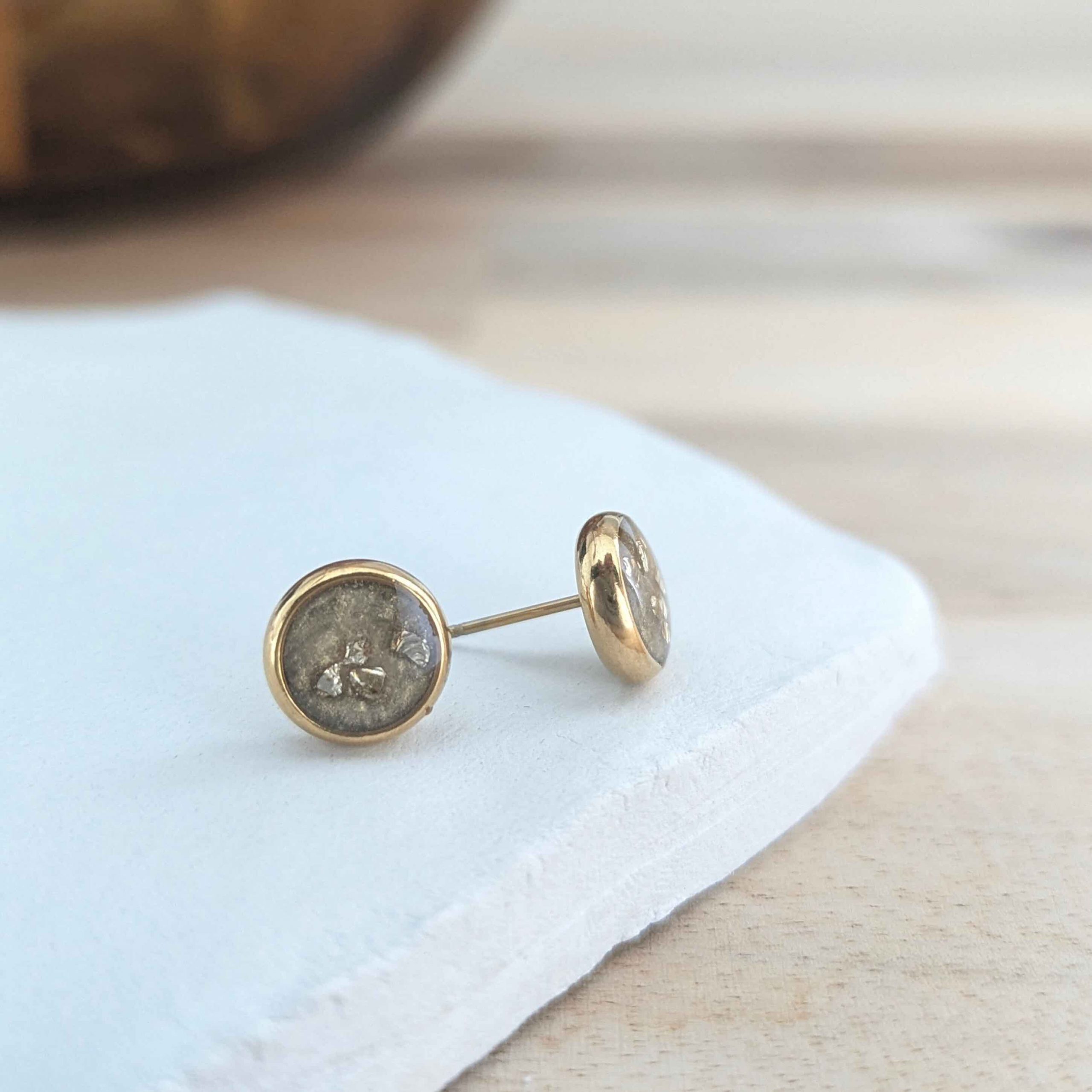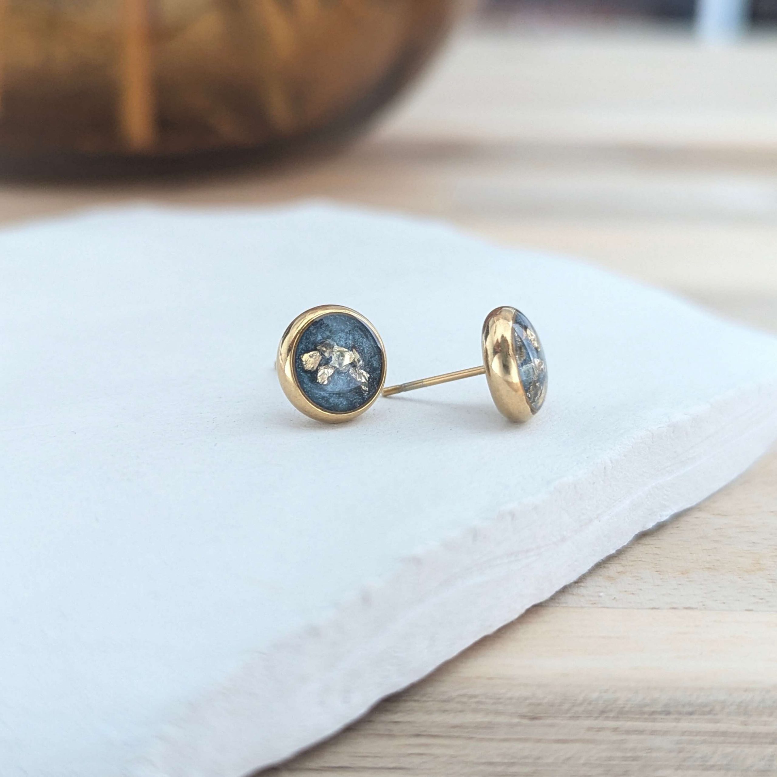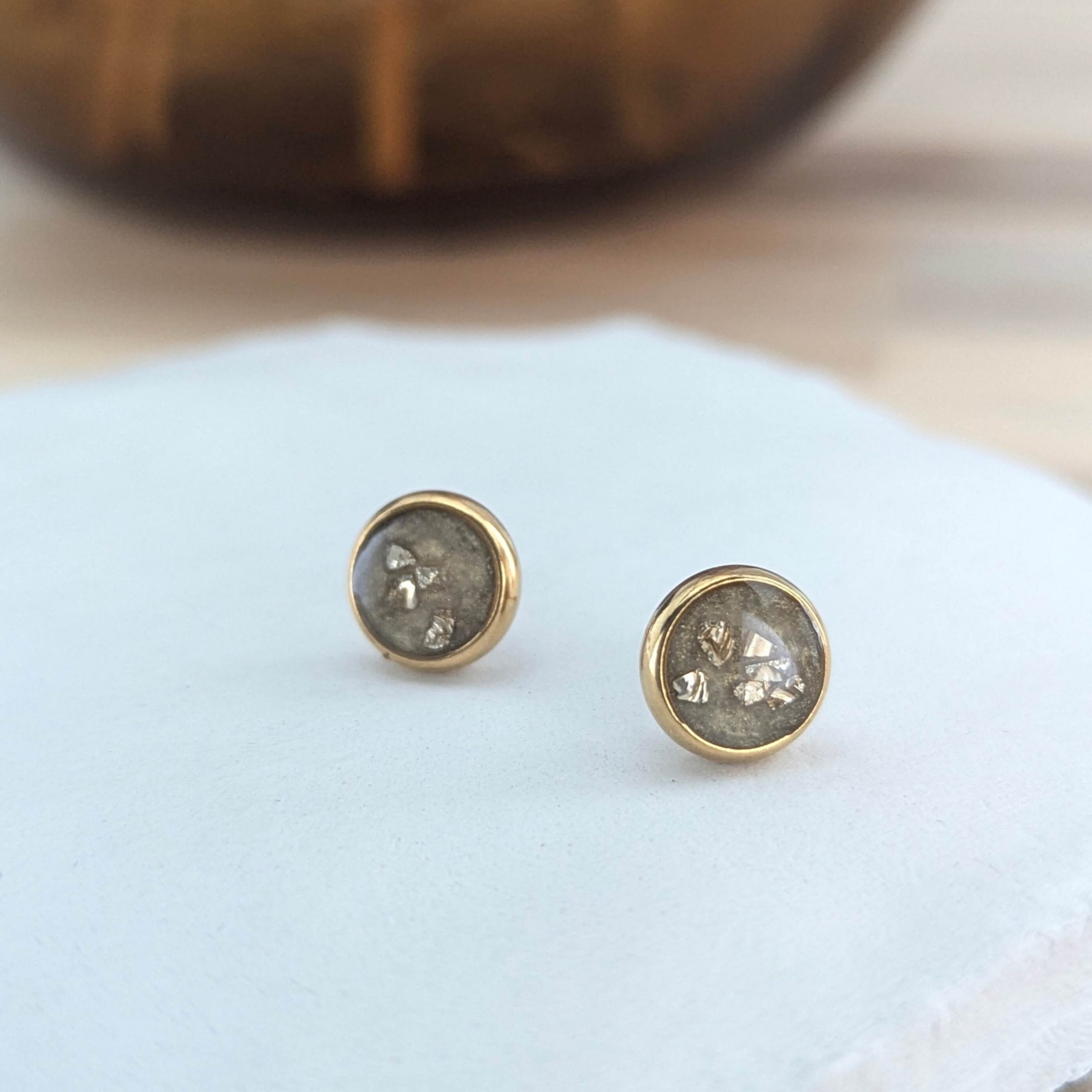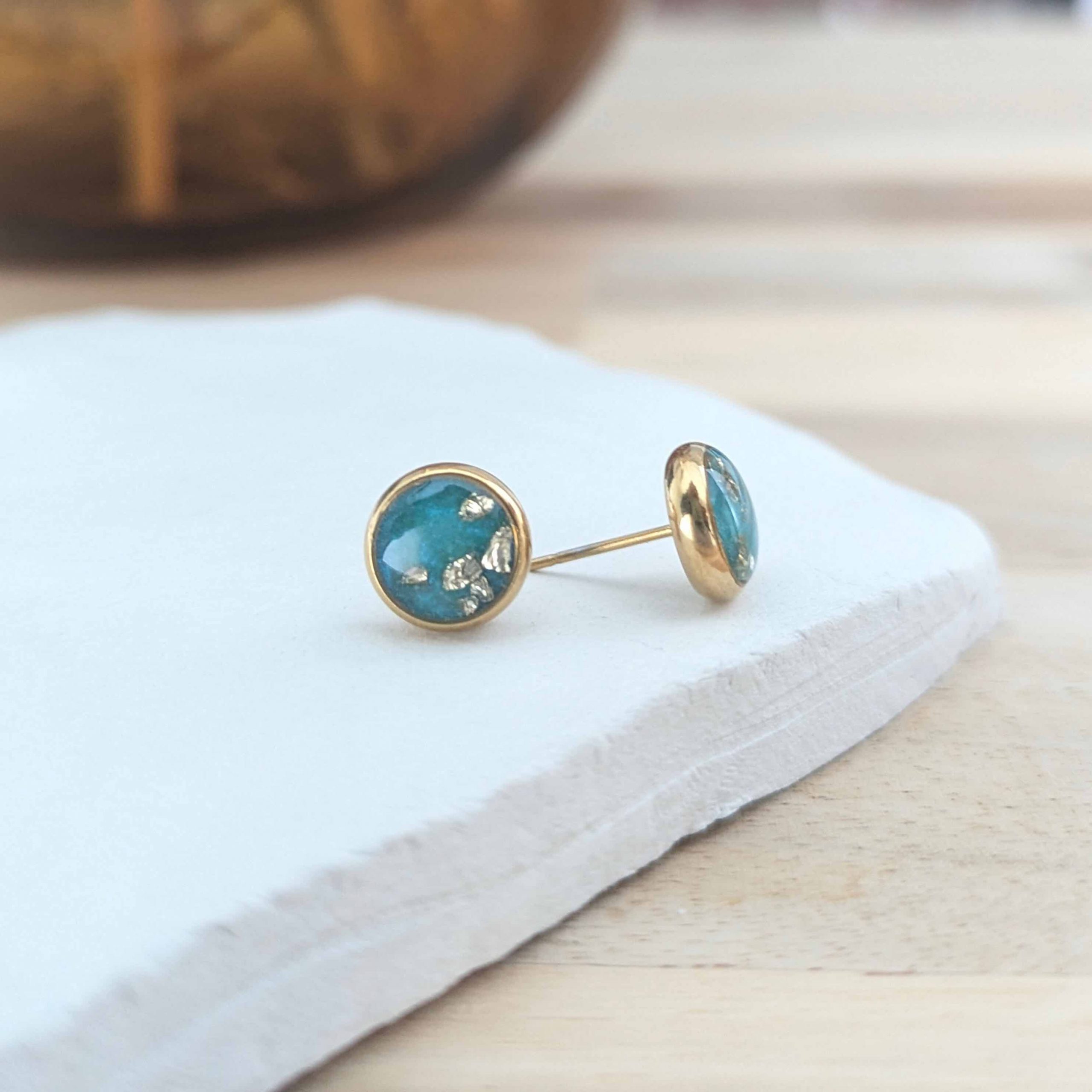 Stud earrings with crushed glass.