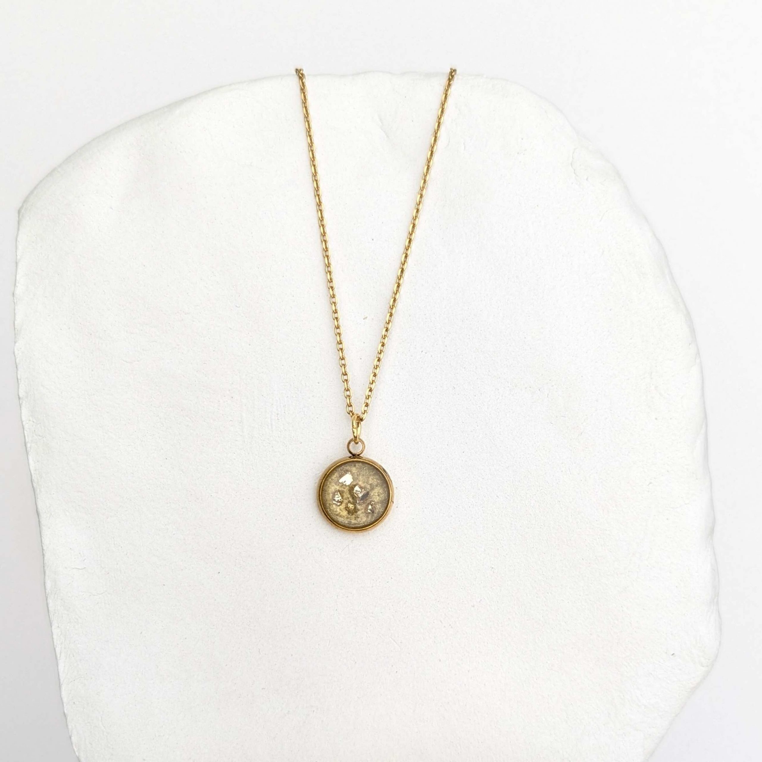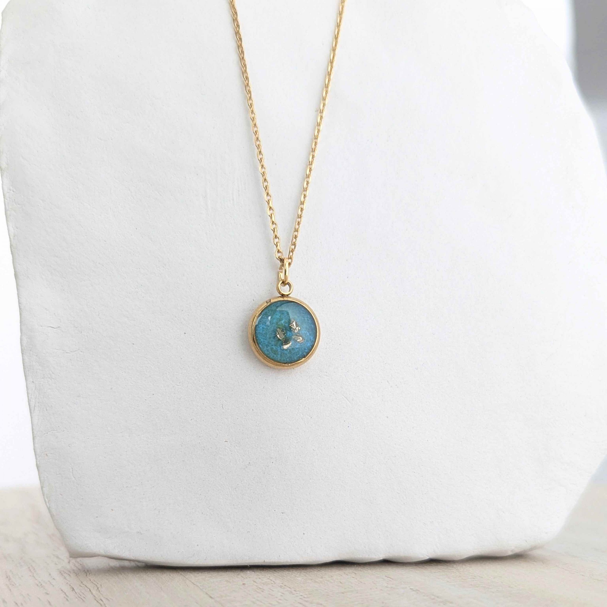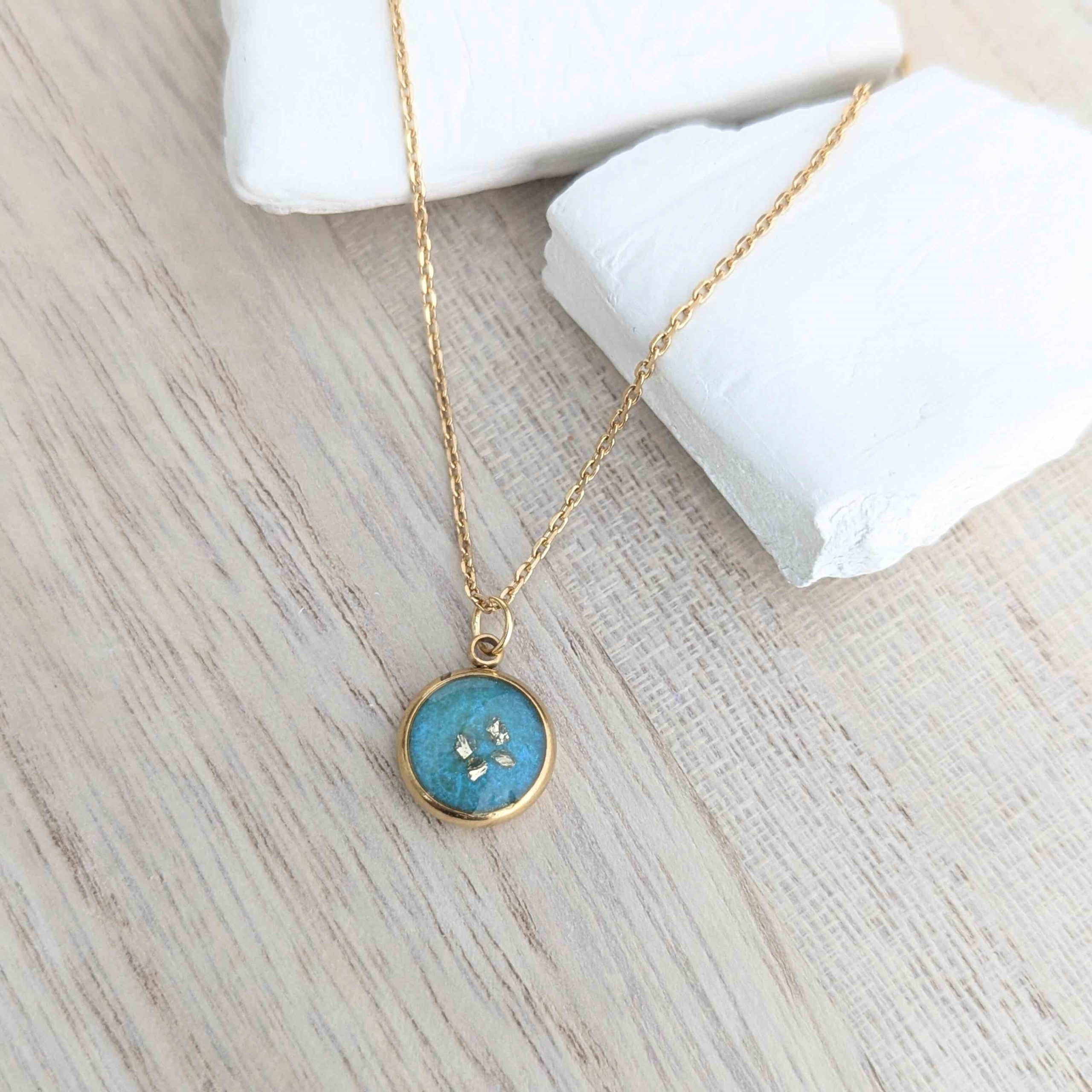 Beautiful lightweight necklace featuring a pendant with crushed glass.