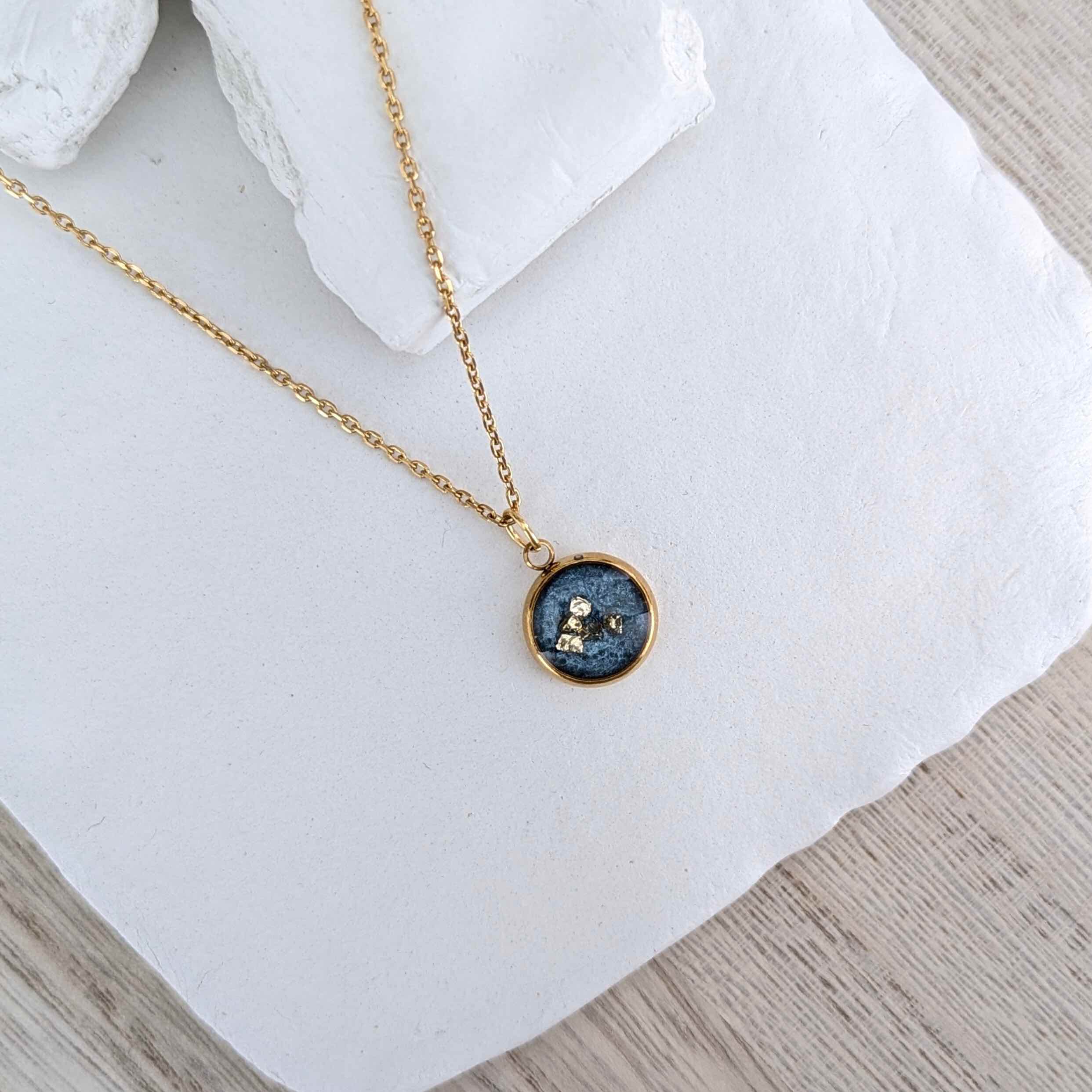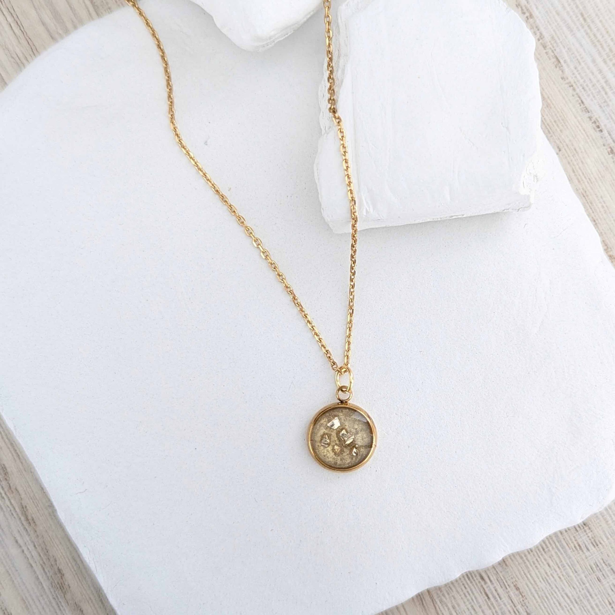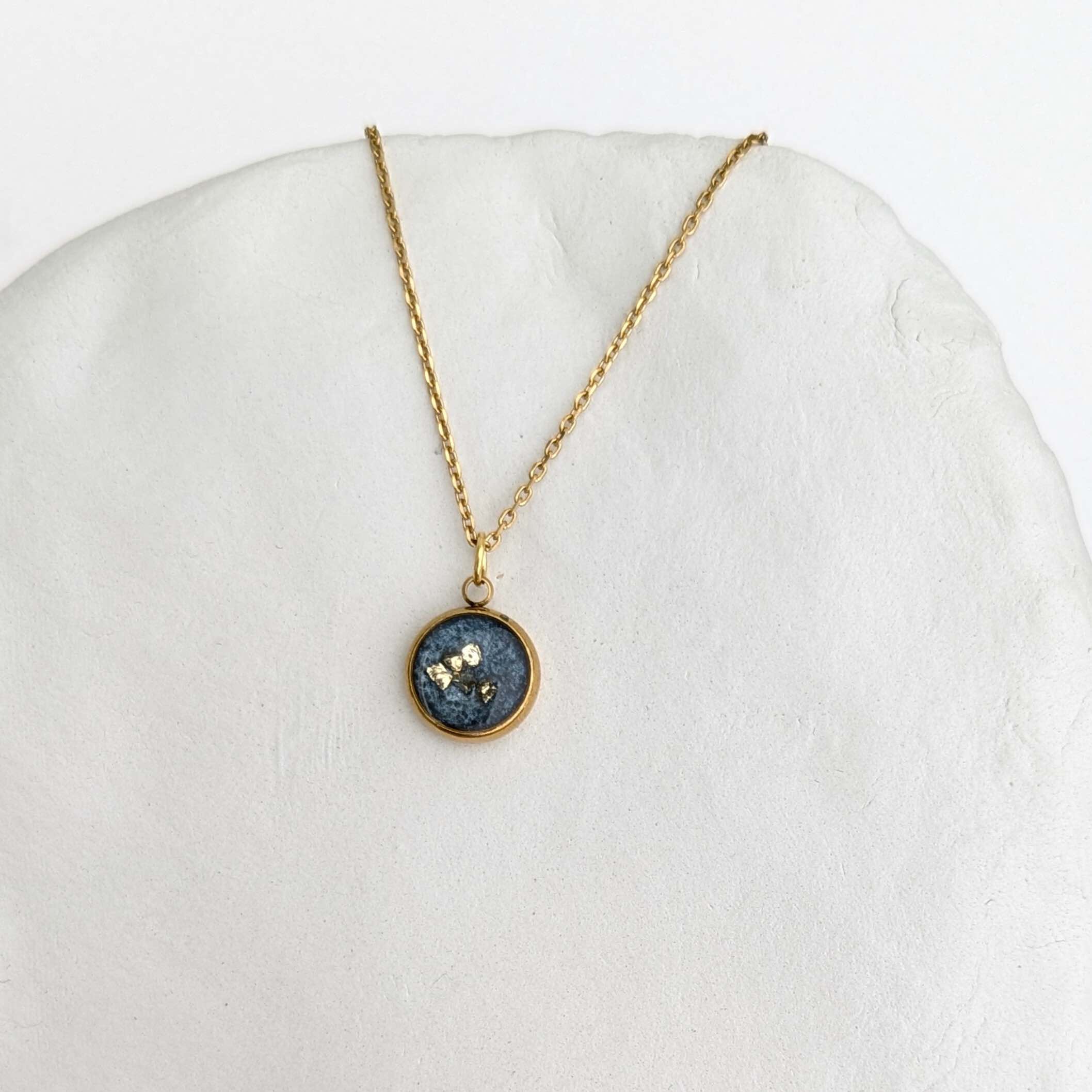 Beautiful lightweight necklace featuring a pendant with crushed glass.